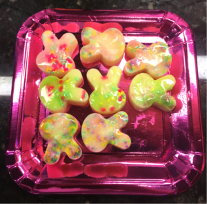 We love the bunny silicone treat molds for Spring and Easter, but you can use any silicone treat mold your heart desires! =) There are some pretty adorable options out there.